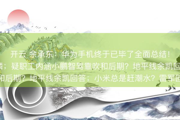开云 余承东:华为手机终于已毕了全面总结!网友:至此,全是麒麟;疑职工内涵小鹏智驾靠吹和后期?地平线余凯回答;小米总是赶潮水?雷军回答