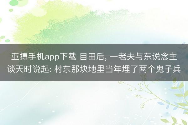 亚搏手机app下载 目田后, 一老夫与东说念主谈天时说起: 村东那块地里当年埋了两个鬼子兵