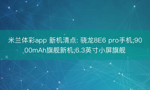 - 米兰体彩app 新机清点: 骁龙8E6 pro手机;9000mAh旗舰新机;6.3英寸小屏旗舰
