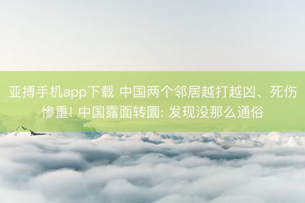 亚搏手机app下载 中国两个邻居越打越凶、死伤惨重! 中国露面转圜: 发现没那么通俗