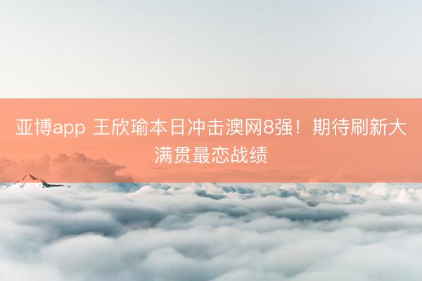 亚博app 王欣瑜本日冲击澳网8强!期待刷新大满贯最恋战绩