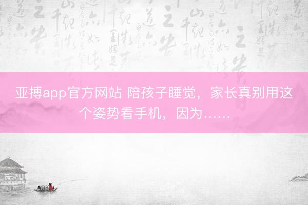 - 亚搏app官方网站 陪孩子睡觉,家长真别用这个姿势看手机,因为……