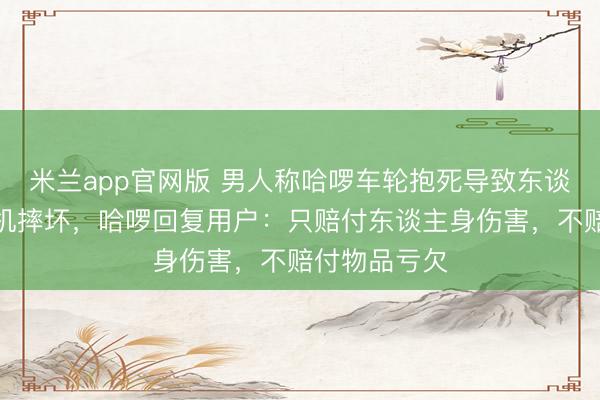 - 米兰app官网版 男人称哈啰车轮抱死导致东谈主摔伤、手机摔坏,哈啰回复用户:只赔付东谈主身伤害,不赔付物品亏欠