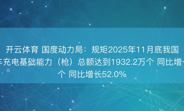 开云体育 国度动力局:规矩2025年11月底我国电动汽车充电基础能力(枪)总额达到1932.2万个 同比增长52.0%