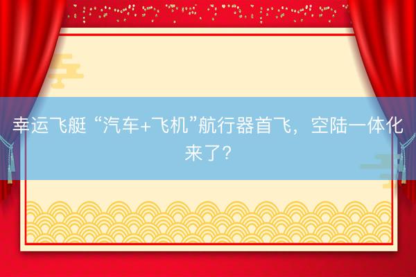 幸运飞艇 “汽车+飞机”航行器首飞,空陆一体化来了?