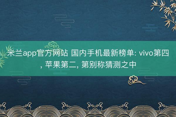 米兰app官方网站 国内手机最新榜单: vivo第四, 苹果第二, 第别称猜测之中