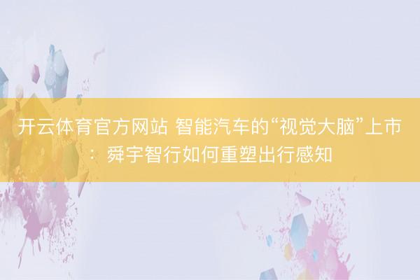 开云体育官方网站 智能汽车的“视觉大脑”上市:舜宇智行如何重塑出行感知