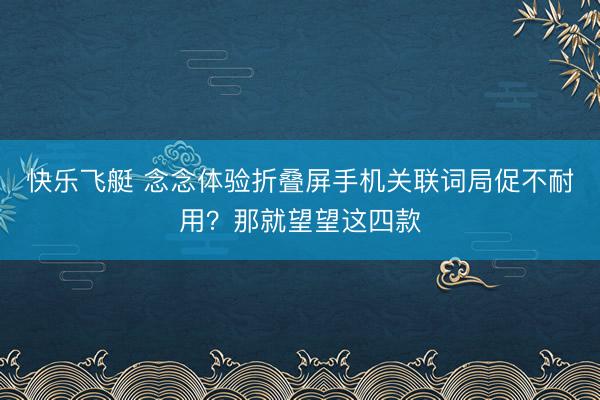 快乐飞艇 念念体验折叠屏手机关联词局促不耐用?那就望望这四款