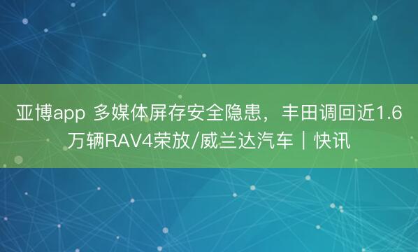 亚博app 多媒体屏存安全隐患,丰田调回近1.6万辆RAV4荣放/威兰达汽车|快讯