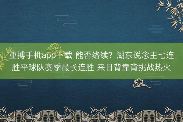 亚搏手机app下载 能否络续?湖东说念主七连胜平球队赛季最长连胜 来日背靠背挑战热火