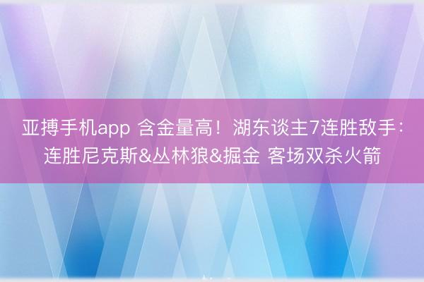 亚搏手机app 含金量高!湖东谈主7连胜敌手:连胜尼克斯&丛林狼&掘金 客场双杀火箭