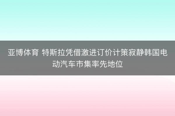 亚博体育 特斯拉凭借激进订价计策寂静韩国电动汽车市集率先地位