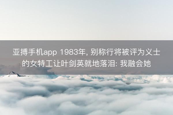 亚搏手机app 1983年, 别称行将被评为义士的女特工让叶剑英就地落泪: 我融会她