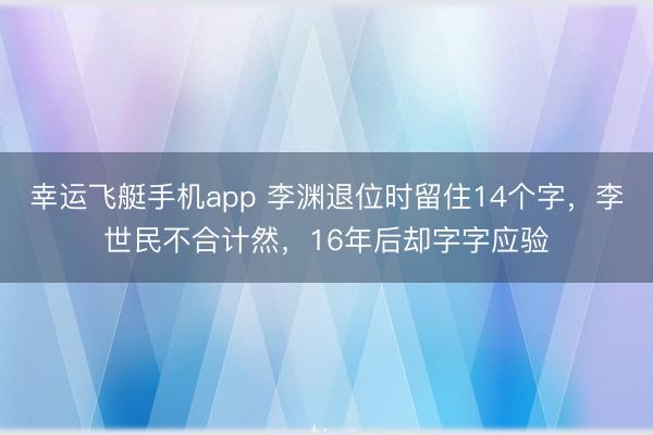 幸运飞艇手机app 李渊退位时留住14个字,李世民不合计然,16年后却字字应验