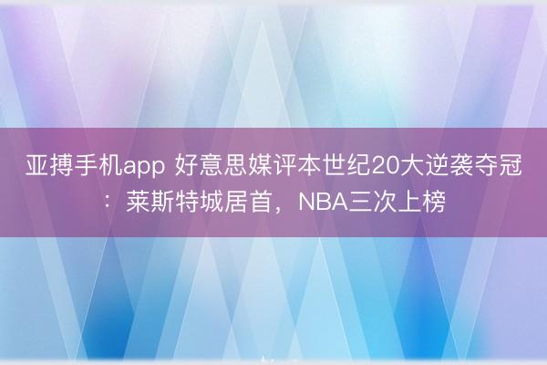 亚搏手机app 好意思媒评本世纪20大逆袭夺冠:莱斯特城居首,NBA三次上榜