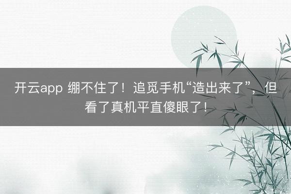 开云app 绷不住了!追觅手机“造出来了”,但看了真机平直傻眼了!