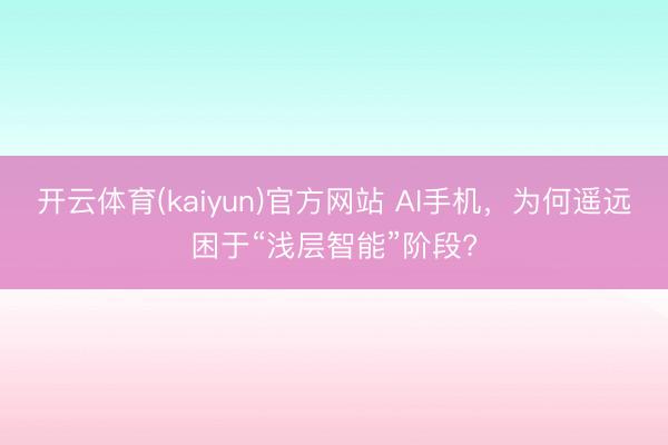 开云体育(kaiyun)官方网站 AI手机,为何遥远困于“浅层智能”阶段?