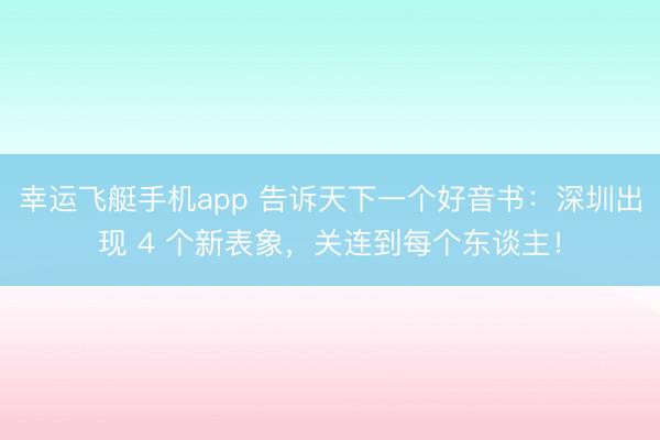 幸运飞艇手机app 告诉天下一个好音书:深圳出现 4 个新表象,关连到每个东谈主!