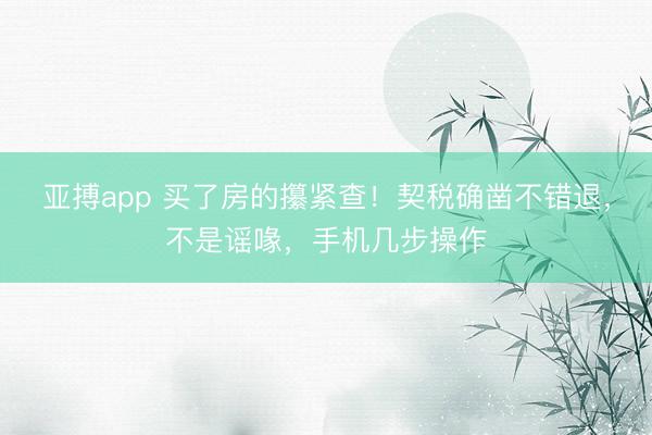 亚搏app 买了房的攥紧查!契税确凿不错退,不是谣喙,手机几步操作