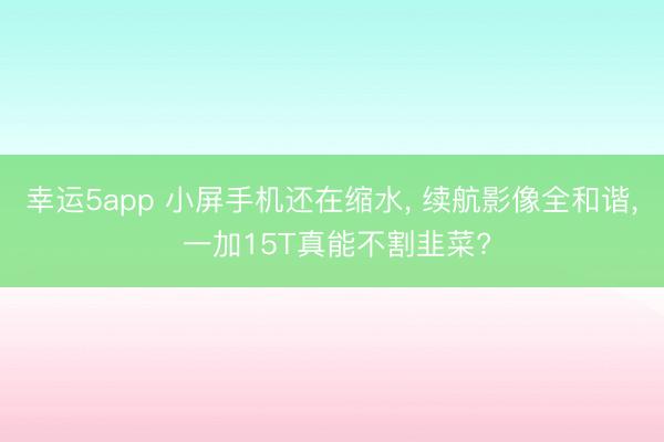 - 幸运5app 小屏手机还在缩水, 续航影像全和谐, 一加15T真能不割韭菜?
