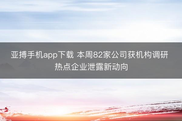 - 亚搏手机app下载 本周82家公司获机构调研 热点企业泄露新动向