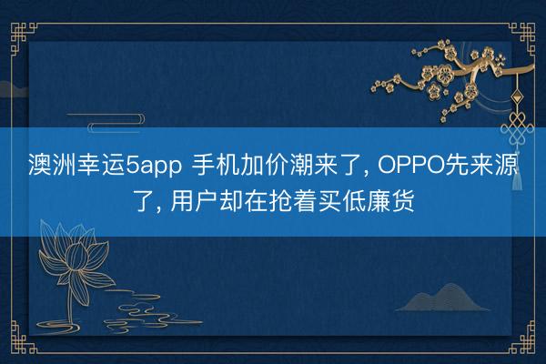 澳洲幸运5app 手机加价潮来了, OPPO先来源了, 用户却在抢着买低廉货