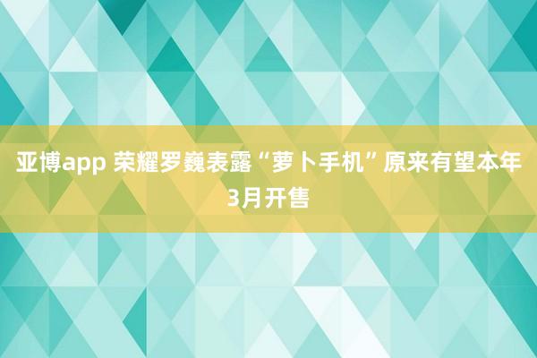 亚博app 荣耀罗巍表露“萝卜手机”原来有望本年3月开售