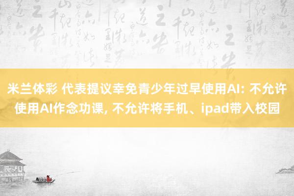 米兰体彩 代表提议幸免青少年过早使用AI: 不允许使用AI作念功课, 不允许将手机、ipad带入校园