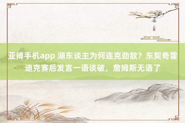 亚搏手机app 湖东谈主为何连克劲敌?东契奇雷迪克赛后发言一语谈破,詹姆斯无语了