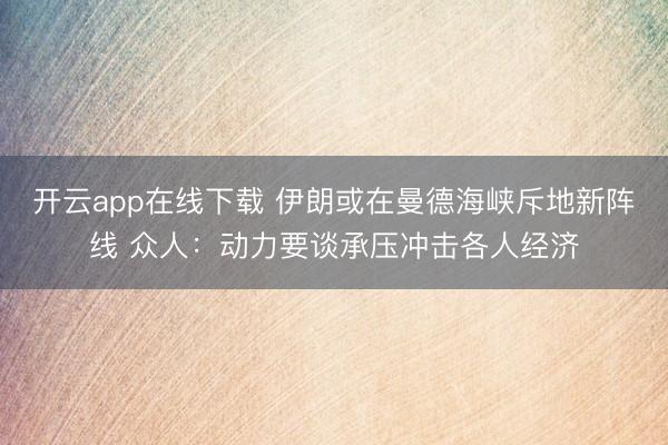 开云app在线下载 伊朗或在曼德海峡斥地新阵线 众人:动力要谈承压冲击各人经济