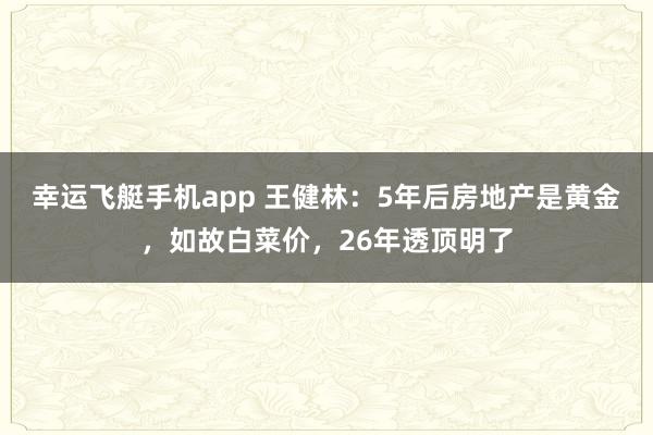 幸运飞艇手机app 王健林:5年后房地产是黄金,如故白菜价,26年透顶明了