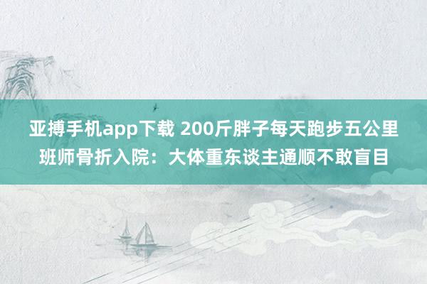 亚搏手机app下载 200斤胖子每天跑步五公里班师骨折入院:大体重东谈主通顺不敢盲目