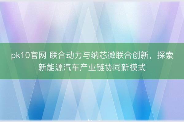 pk10官网 联合动力与纳芯微联合创新,探索新能源汽车产业链协同新模式
