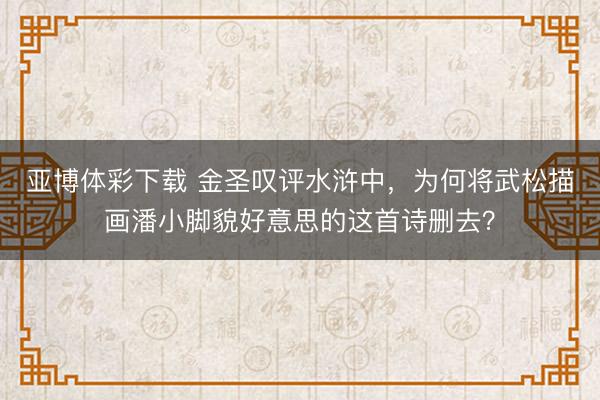 亚博体彩下载 金圣叹评水浒中,为何将武松描画潘小脚貌好意思的这首诗删去?