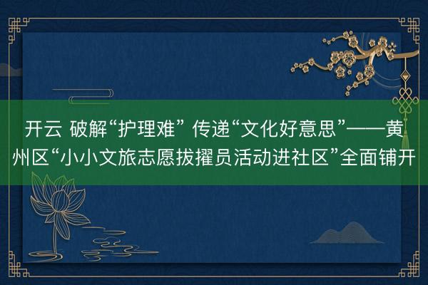 开云 破解“护理难” 传递“文化好意思”——黄州区“小小文旅志愿拔擢员活动进社区”全面铺开