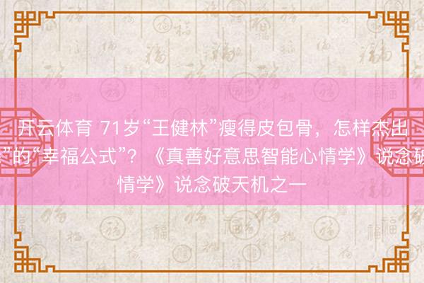 开云体育 71岁“王健林”瘦得皮包骨,怎样杰出“萨缪尔森”的“幸福公式”?《真善好意思智能心情学》说念破天机之一