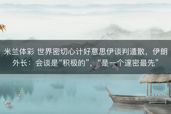 米兰体彩 世界密切心计好意思伊谈判遣散,伊朗外长:会谈是“积极的”,“是一个邃密最先”