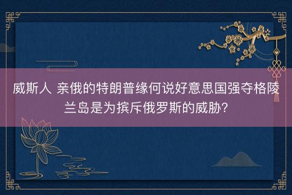 威斯人 亲俄的特朗普缘何说好意思国强夺格陵兰岛是为摈斥俄罗斯的威胁?