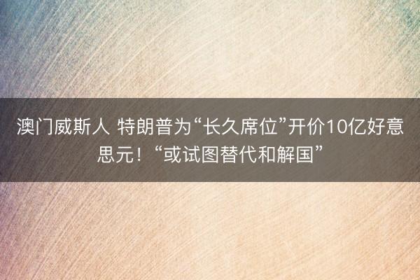 澳门威斯人 特朗普为“长久席位”开价10亿好意思元!“或试图替代和解国”