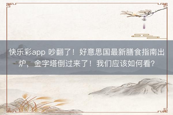 快乐彩app 吵翻了!好意思国最新膳食指南出炉,金字塔倒过来了!我们应该如何看?