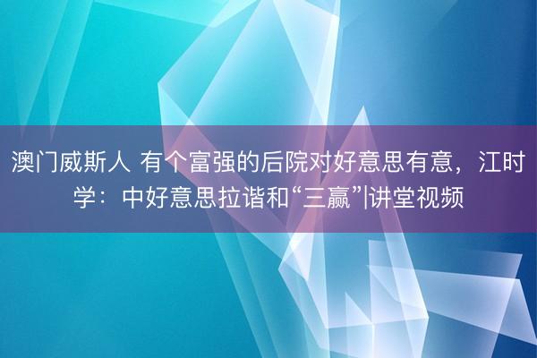 澳门威斯人 有个富强的后院对好意思有意,江时学:中好意思拉谐和“三赢”|讲堂视频
