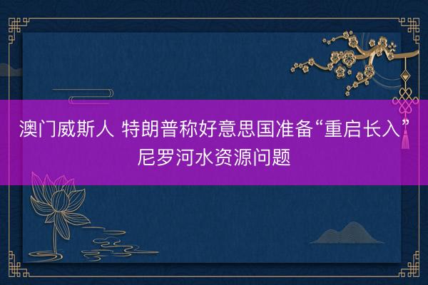 澳门威斯人 特朗普称好意思国准备“重启长入”尼罗河水资源问题