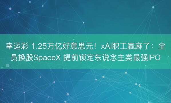 幸运彩 1.25万亿好意思元!xAI职工赢麻了:全员换股SpaceX 提前锁定东说念主类最强IPO