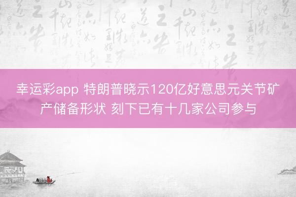 幸运彩app 特朗普晓示120亿好意思元关节矿产储备形状 刻下已有十几家公司参与