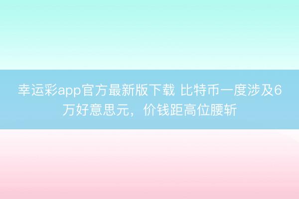 幸运彩app官方最新版下载 比特币一度涉及6万好意思元,价钱距高位腰斩