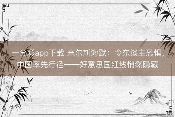 一分彩app下载 米尔斯海默:令东谈主恐惧,中国率先行径——好意思国红线悄然隐藏