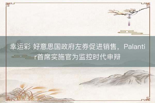 幸运彩 好意思国政府左券促进销售,Palantir首席实施官为监控时代申辩