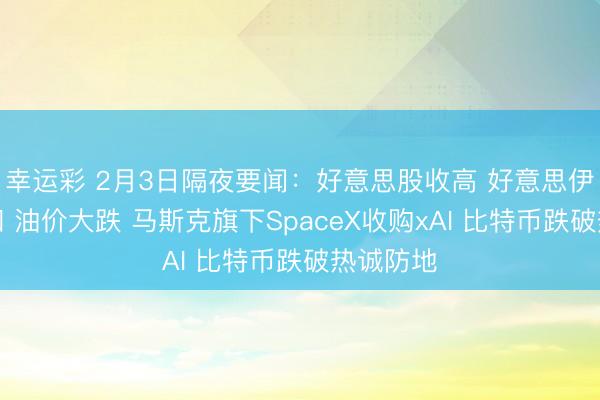 幸运彩 2月3日隔夜要闻:好意思股收高 好意思伊时势缓和 油价大跌 马斯克旗下SpaceX收购xAI 比特币跌破热诚防地