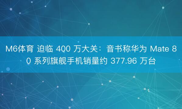 M6体育 迫临 400 万大关:音书称华为 Mate 80 系列旗舰手机销量约 377.96 万台