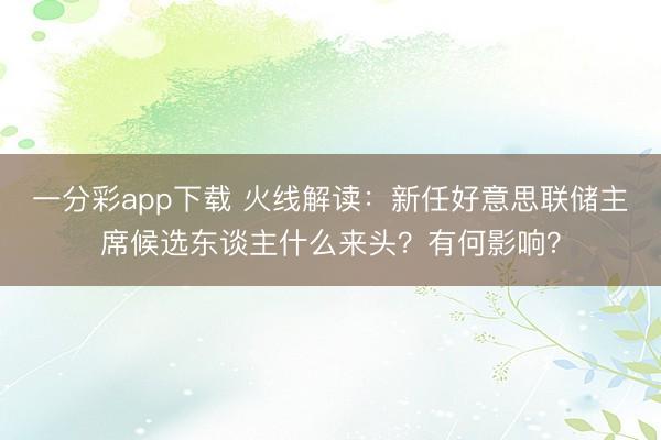 一分彩app下载 火线解读:新任好意思联储主席候选东谈主什么来头?有何影响?